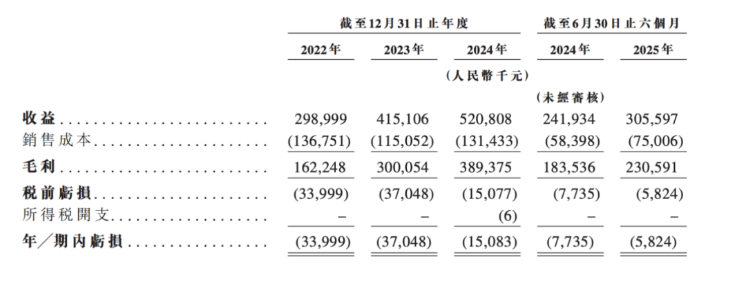 《招股书》显示,小鹅通近年营收保持高速增长。2022年至2024年,公司年收入分别约为2.99亿元、4.15亿元、5.21亿元,复合年增长率达32%。2025年上半年收入3.06亿元,同比增长26.3%。三年内毛利率由54.3%攀升至74.8%,2025年上半年更达75.5%。