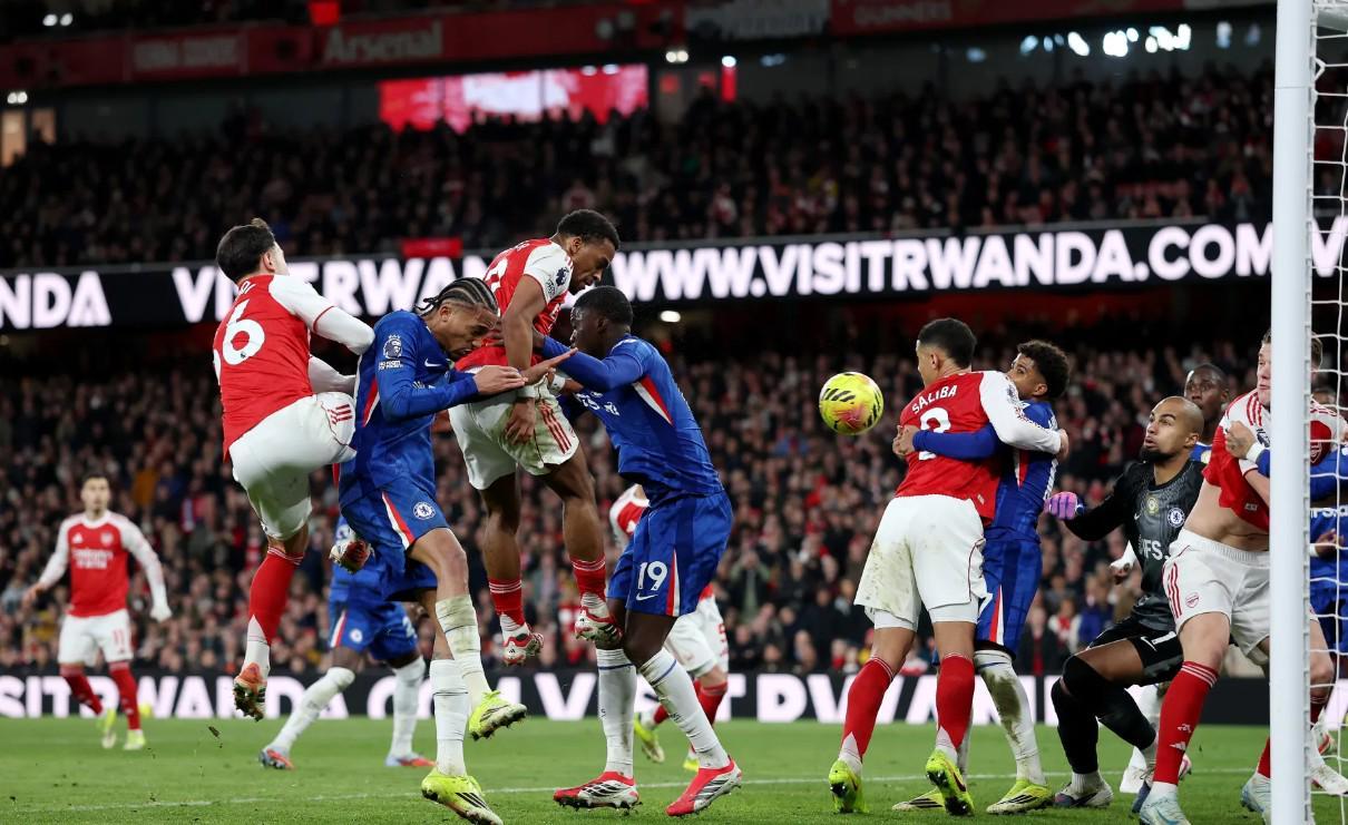 尤里恩-廷贝尔打入阿森纳对阵切尔西的制胜球——不少观察者批评球队过于依赖定位球得分。