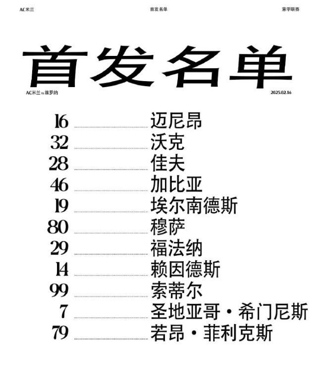 下半场伊始,米兰换上亚历克斯·希门尼斯、莱昂,换下沃克、索蒂尔。